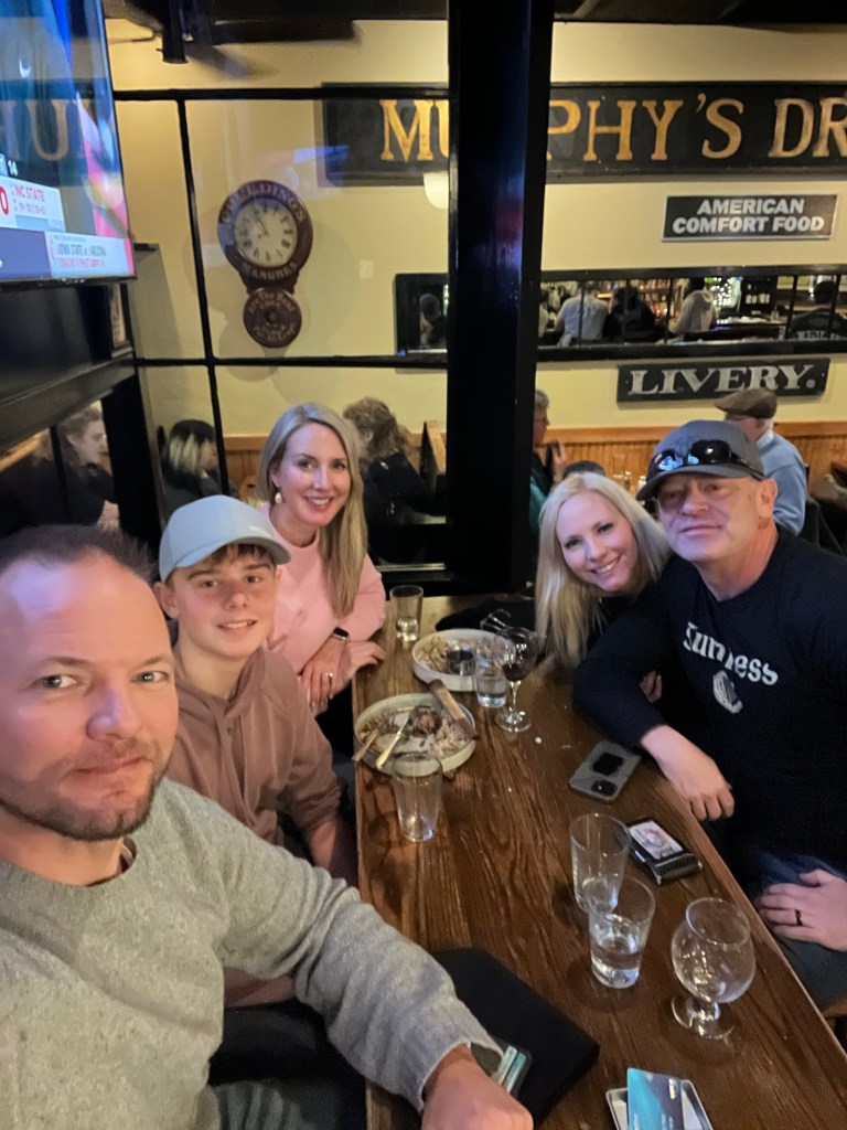 That evening we had dinner at Murphy’s on the Green and ended the night playing trivia, Euchre, cuddling with their sweet dog Morale, and sharing lots of laughs.
