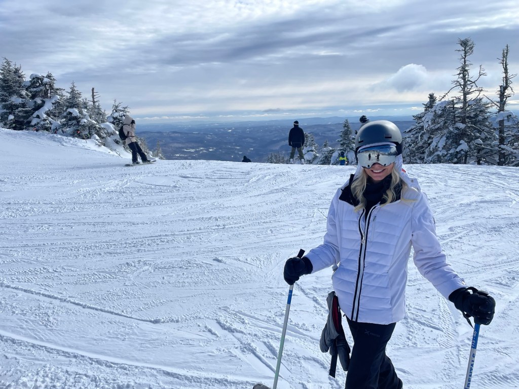 Enjoying the view from the top of Killington Mountain in VermontAt one point I took a spill and watched my helmet and goggles roll down the mountain and disappear into a snow ditch.